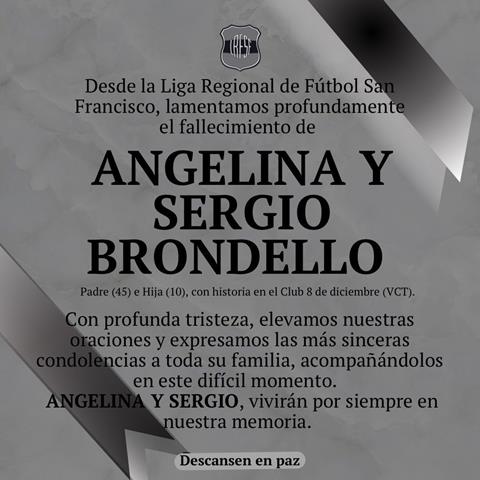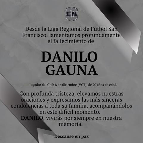 COMISION DIRECTIVA y CUERPOS ADHERENTES DE ESTA LIGA REGIONAL ADHIEREN A DUELO, ANTE TAN IRREPARARABLE PERDIDA
