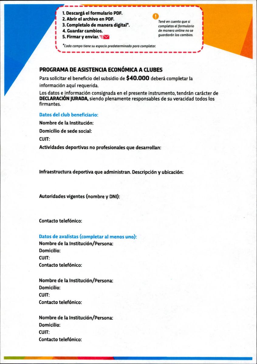 Para ser beneficiado por el mismo, la ACD ha enviado la documentación necesaria, la cual deberá ser completada y enviada con carácter de DECLARACION JURADA, siguiendo los pasos previstos para ello.