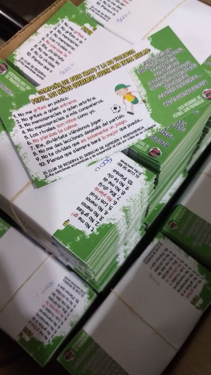 De acuerdo a lo establecido por el Comité Ejecutivo en su última reunión el pasado miércoles 05.09.2018 respecto al inicio de la Campaña Contra la Violencia en las canchas de categorías menores, es que se están repartiendo a cada club folletos de referencia al tema para que los mismos sean entregados OBLIGATORIAMENTE a quienes ingresan a cada cancha junto con las entradas oficiales (uno por cada entrada o uno por cada grupo familiar) que la Liga ya ha enviado a todos sus afiliados, en la que han comenzado a ser cubierto cada espectador por el seguro correspondiente de espectadores (Compañía El Surco S.A)