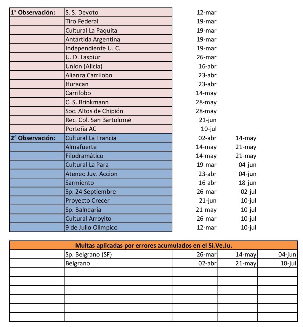 Adjuntamos listado de clubes con observaciones en la utilización del Si.Ve.Ju. 10/07/2018.