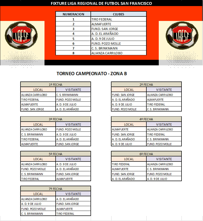 El resultado final del mismo se tradujo en el siguiente fixture: