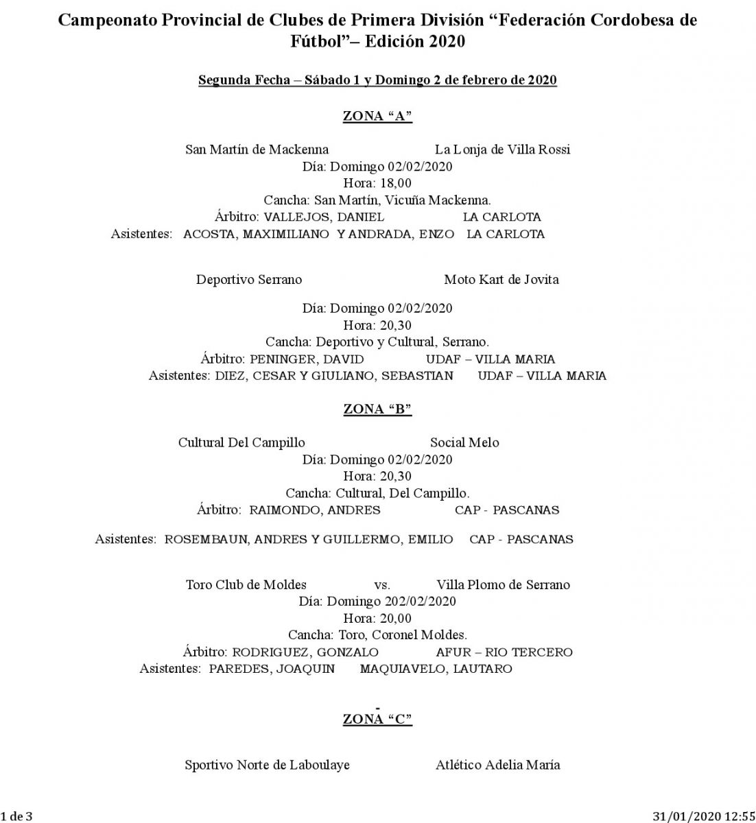 Este próximo fin de semana se llevará a cabo la segunda fecha del Campeonato Provincial de Clubes de Primera División en la que participan nuestros afiliados A. D. El Arañado, B. P. Almafuerte y C. G. Spano.