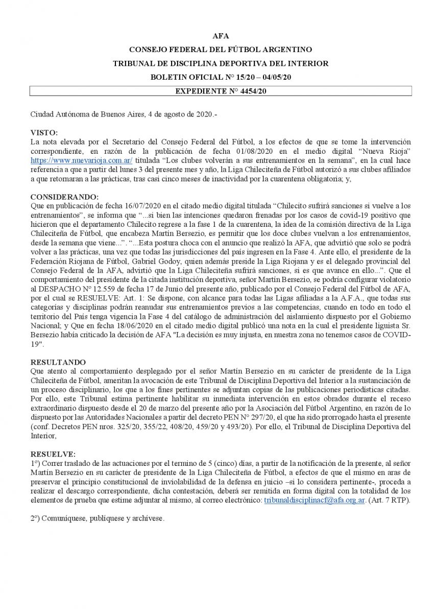 A continuación adjuntamos el BOLETIN OFICIAL N° 15/20 – 04/05/20, para que cada club lo lea y analice y saque sus propias conclusioones respecto a éste tema: