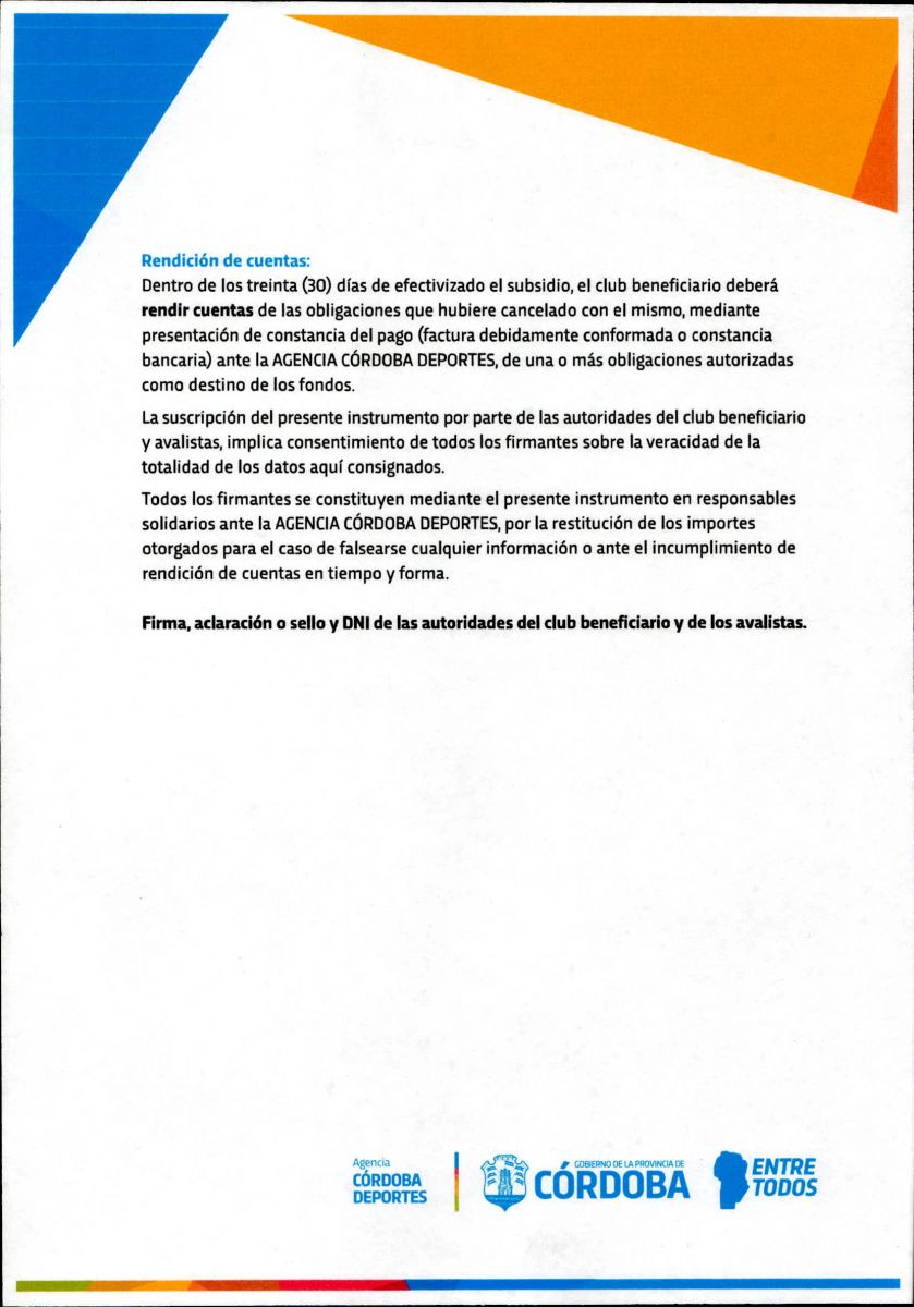 Tan como lo publicáramos el dia de ayer, la Agencia Córdoba Deportes lanzó un PROGRAMA DE ASISTENCIA ECONÓMICA A CLUBES, el cual consta de la entrega de un subsidio de $ 40.000,00 para clubes de nuestra provincia.