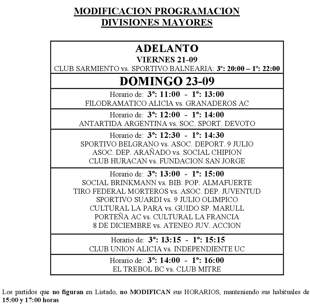En el transcurso de la semana se fueron recibiendo distintos pedidos acerca de modificaciones de días y horarios para disputar los partidos del próximo fin de semana.
