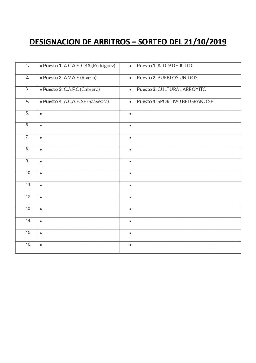 SORTEO DE ARBITRO PARA EL PRÓXIMO FIN DE SEMANA